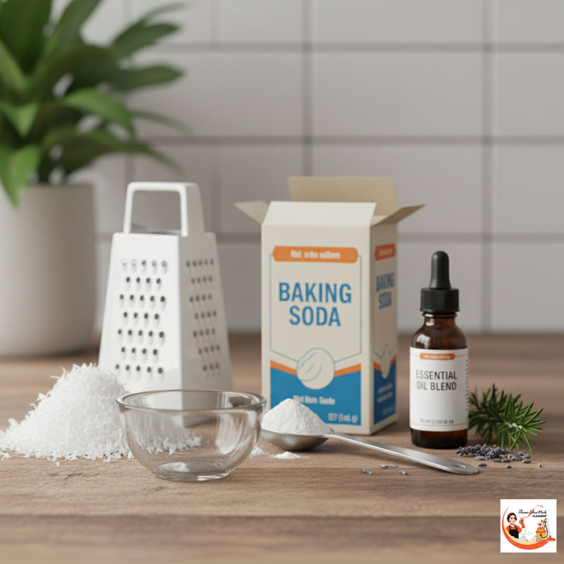 สูตรอ่อนโยน เหมาะกับการทำความสะอาดประจำ ให้ทำการขูดสบู่เป็นฝอยๆ แล้วนำมาผสมกับเบกกิ้งโซดา และน้ำมันหอมระเหย จากนั้นผสมให้เข้ากัน และโรยตามร่องยาแนวที่เกิดราดำ จากนั้นใช้ฟองน้ำชุบน้ำหมาดๆ ขัดบริเวณที่โรยผลสบู่ที่ผสมไว้ให้ทั่ว และล้างออกให้สะอาด